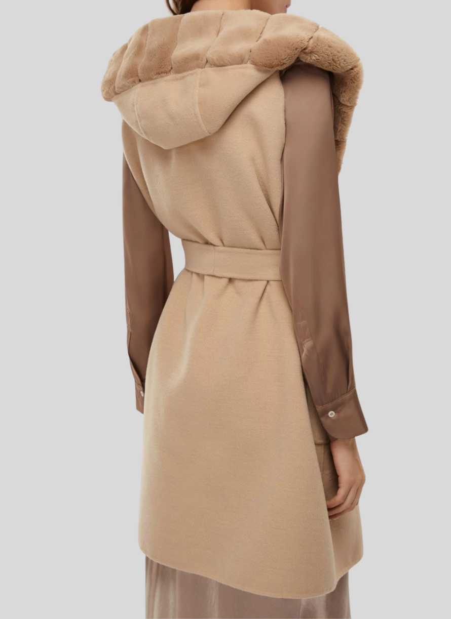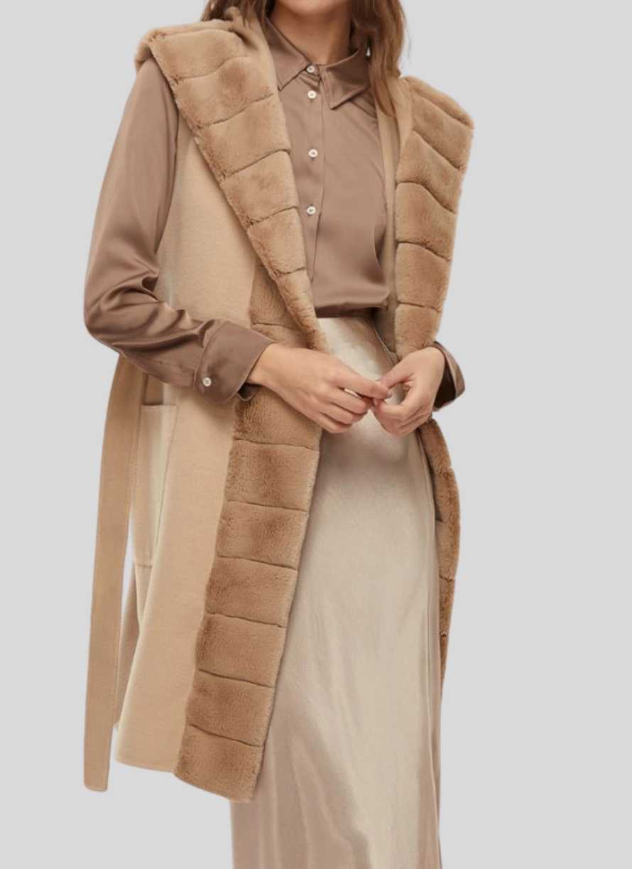 Este chaleco Emme Marella destaca por su largo generoso y sus elegantes detalles de pelo que aportan un toque sofisticado. Con corte recto y cuello chal, ofrece un estilo perfectamente chic y muy cómodo para la nueva temporada. Cuenta con cierre recto con cinturón para ajustar la cintura, bolsillos laterales de parche y una capucha con ribete de pelo que añade calidez y originalidad. Ideal para acompañarte con estilo y confort en cualquier ocasión.