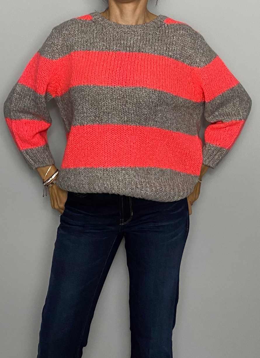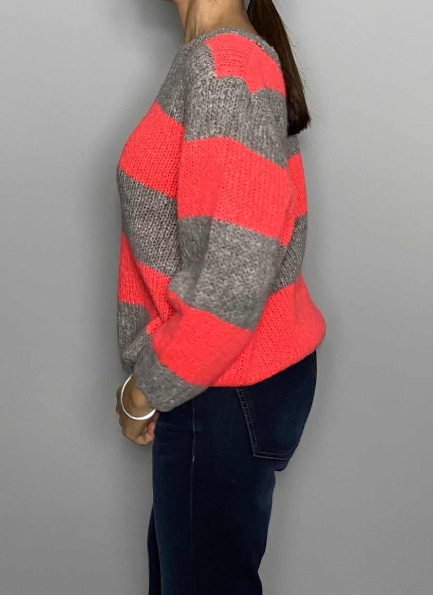 Este jersey de punto multicolor combina lana y mohair, ofreciendo una textura cálida y suave. Su corte recto y cuello redondo brindan un ajuste cómodo y versátil, ideal para lucir con estilo en cualquier ocasión. Perfecto para añadir un toque de color y confort a tu armario.