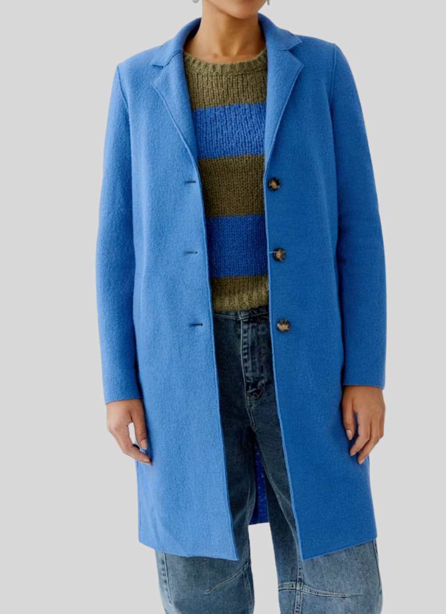 Abrigo onfeccionado en lana virgen italiana de alta calidad, su corte clásico y recto ofrece un ajuste elegante, mientras que el diseño de un solo botón y solapa con muesca añade sofisticación. Con bolsillos laterales funcionales y sin forro, este abrigo combina modernidad y comodidad para el día a día.