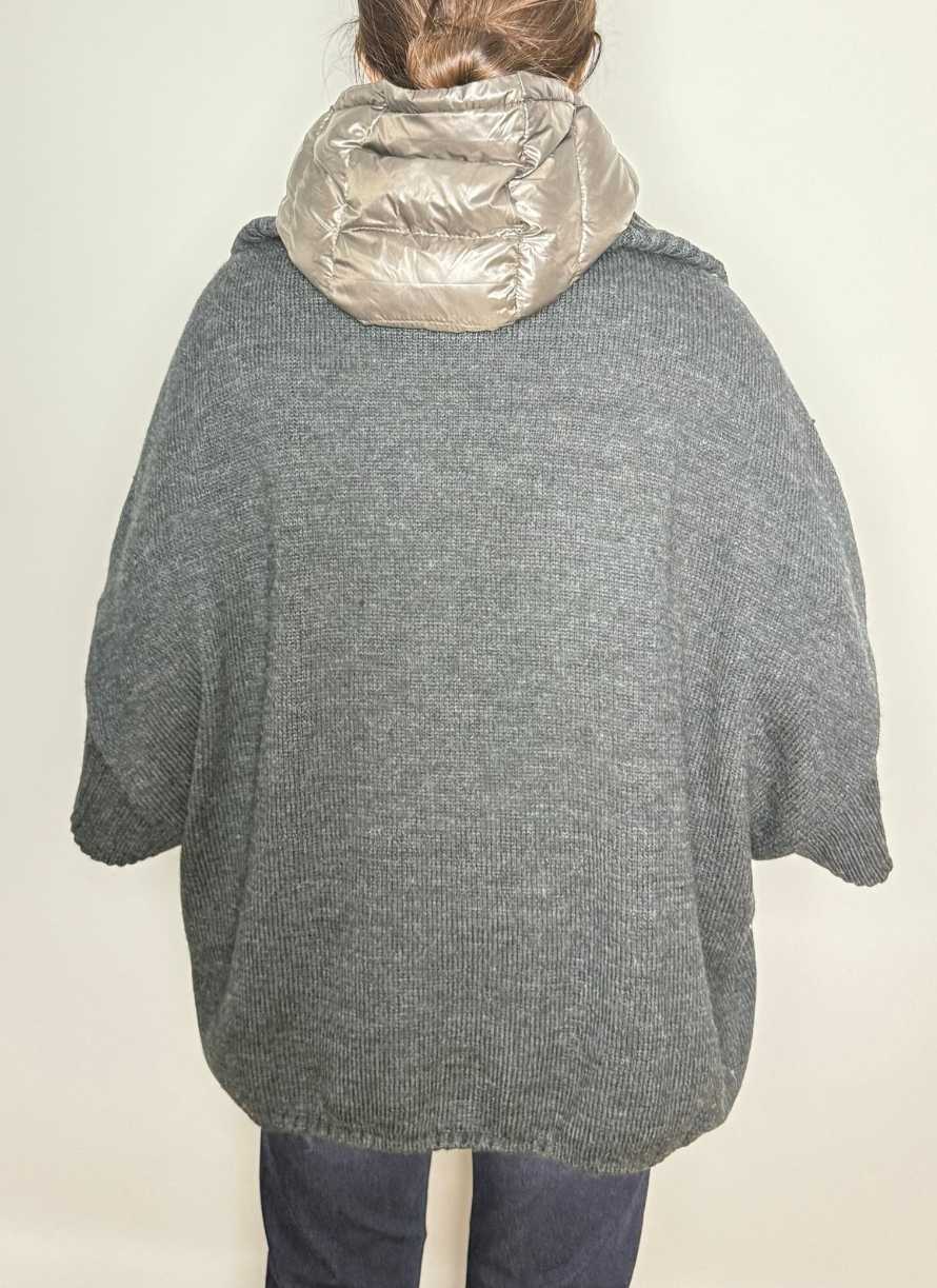 Chaqueta doble versátil que combina una capa exterior de piel y lana en tonos marrones y grises con un corte ancho para un estilo cómodo y moderno. La pieza interior es una chaqueta acolchada ajustada, con capucha y cierre de cremallera en tonos marrones, aportando calidez y protección. Perfecta para adaptarte a diferentes temperaturas y ocasiones con un diseño elegante y funcional.