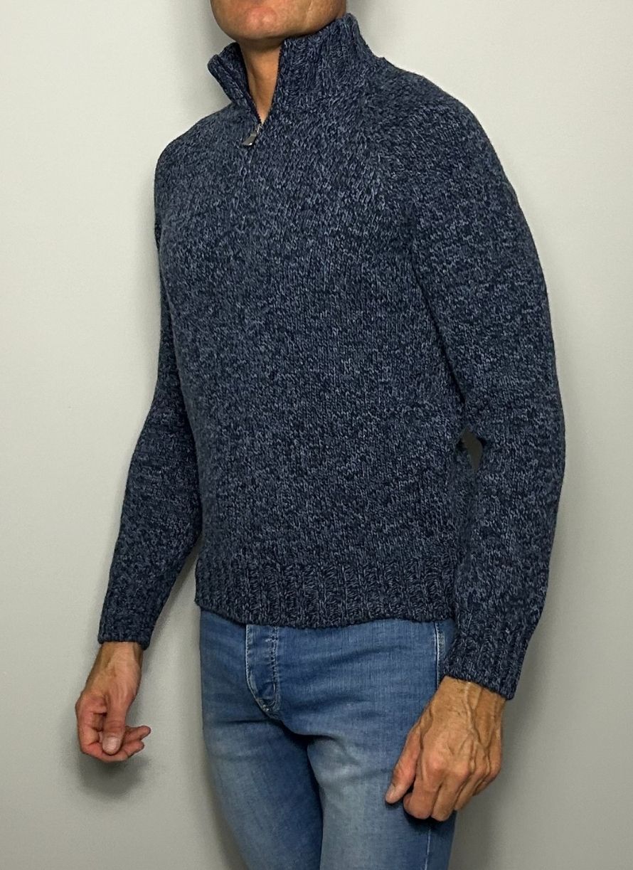 Suéter de cuello alto con cremallera en lana Super Geelong de 5 capas, con efecto mouliné y mangas raglán. Una prenda cálida y suave, perfecta para los fríos días de invierno. Por su suavidad inigualable, una prenda de lana Super Geelong es una pequeña concesión al lujo. Hecho en Italia.